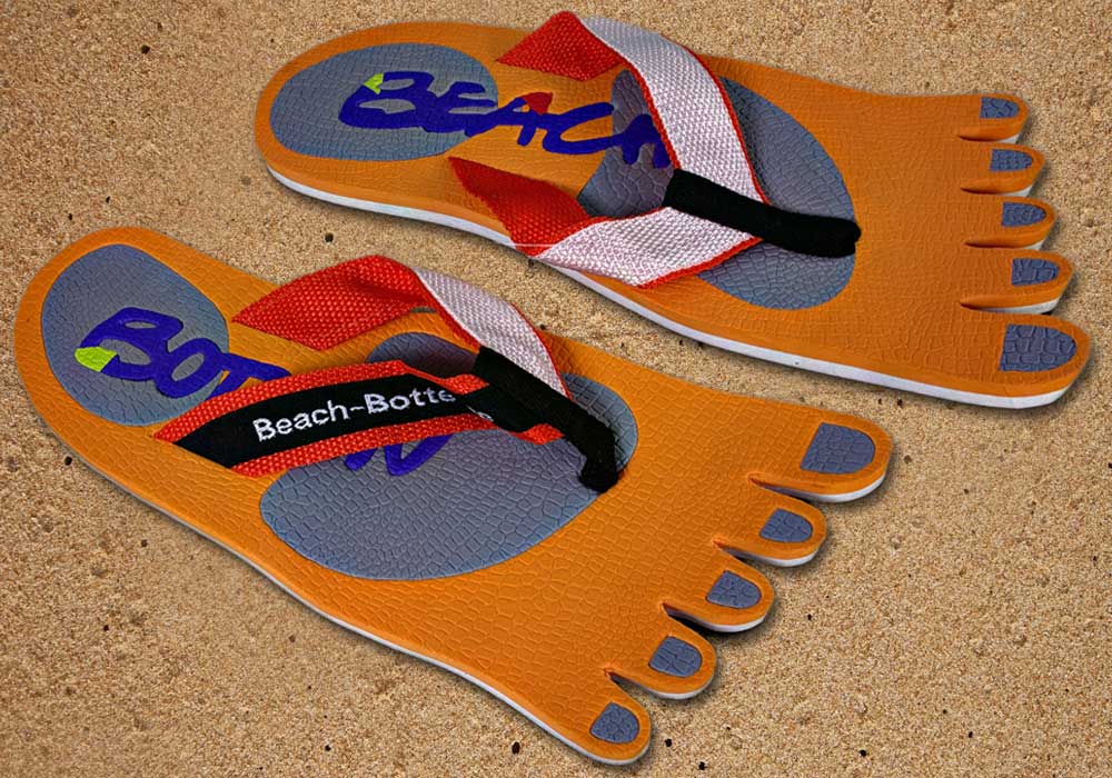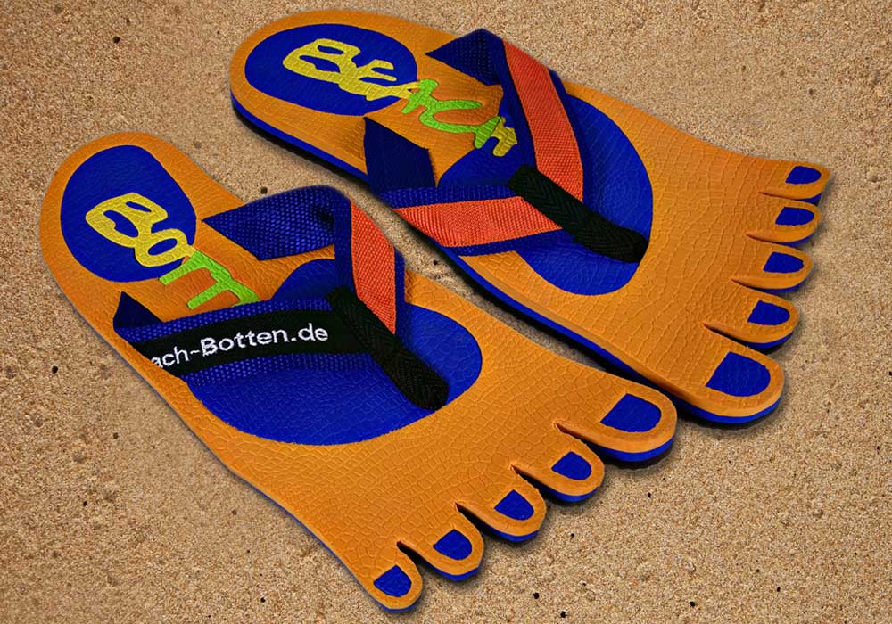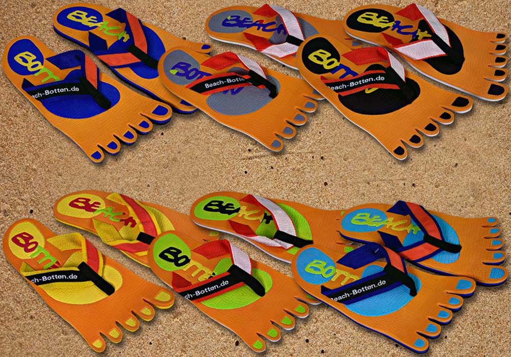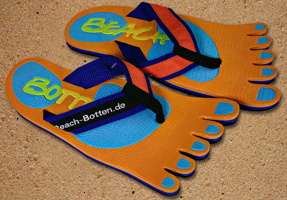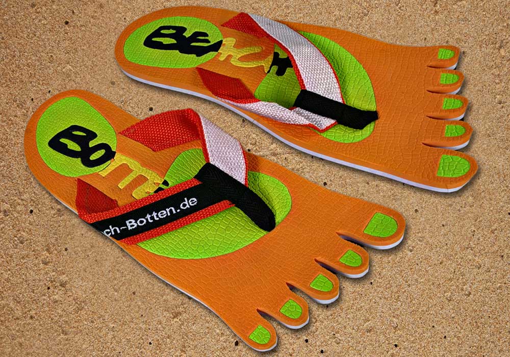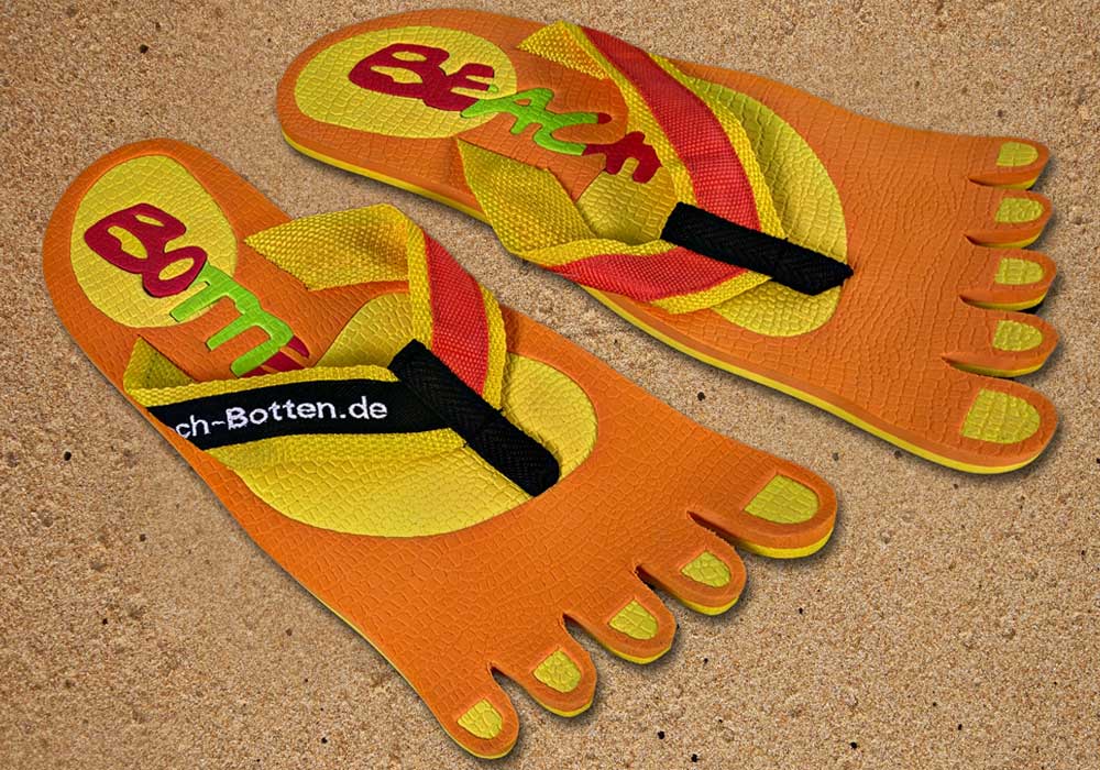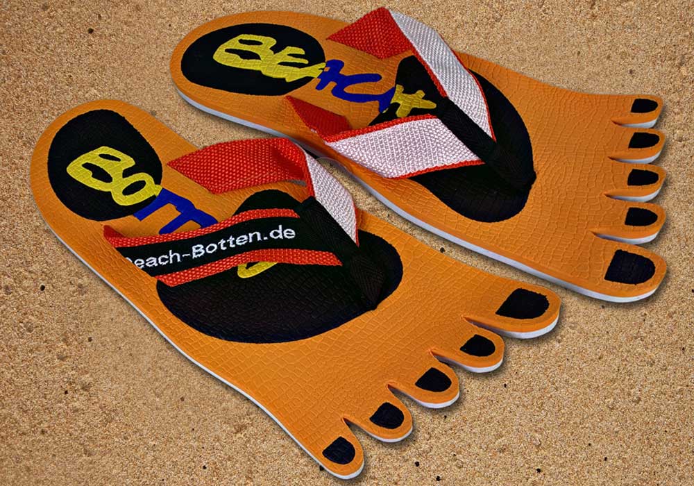 Das Modell „Foot Party Small“ ist angelehnt an die Form von deinen Füßen. Bei diesen BeachBotten wurde die Zehenform eingestanzt. Eine orange Farbe bildet das optische Grunddesign, dass mit einem farbigen BeachBotten-Print verfeinert wurde. Aufgrund der großen Farbpalette im Online-Shop siehst du damit überall gut aus. Die Badeschuhe „Foot Party Small“ sind alltagstauglich, etwas kleiner als andere Modelle und wunderbar mit allerlei Kleidung zu kombinieren. Hier kannst du die orange Variante kaufen, sofern noch vorrätig. Schreite mit Freunden in eine farbige Zukunft und gönne Dir das ungewöhnliche, viele weitere Modelle kannst Du im Shop entdecken.