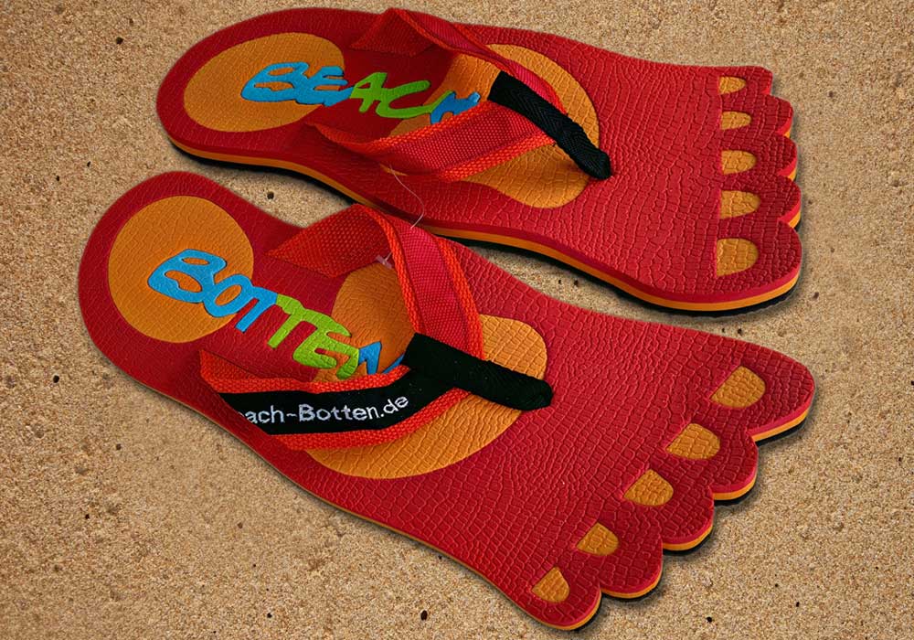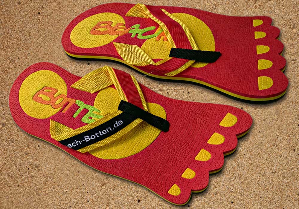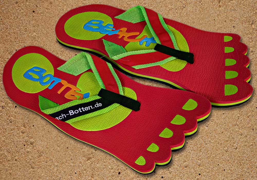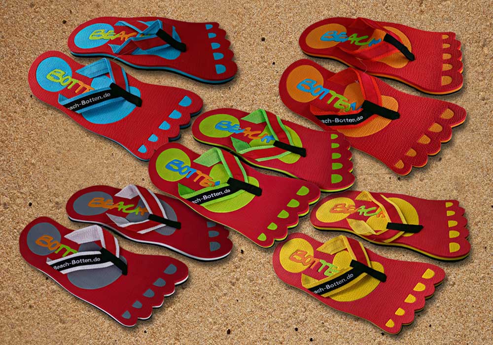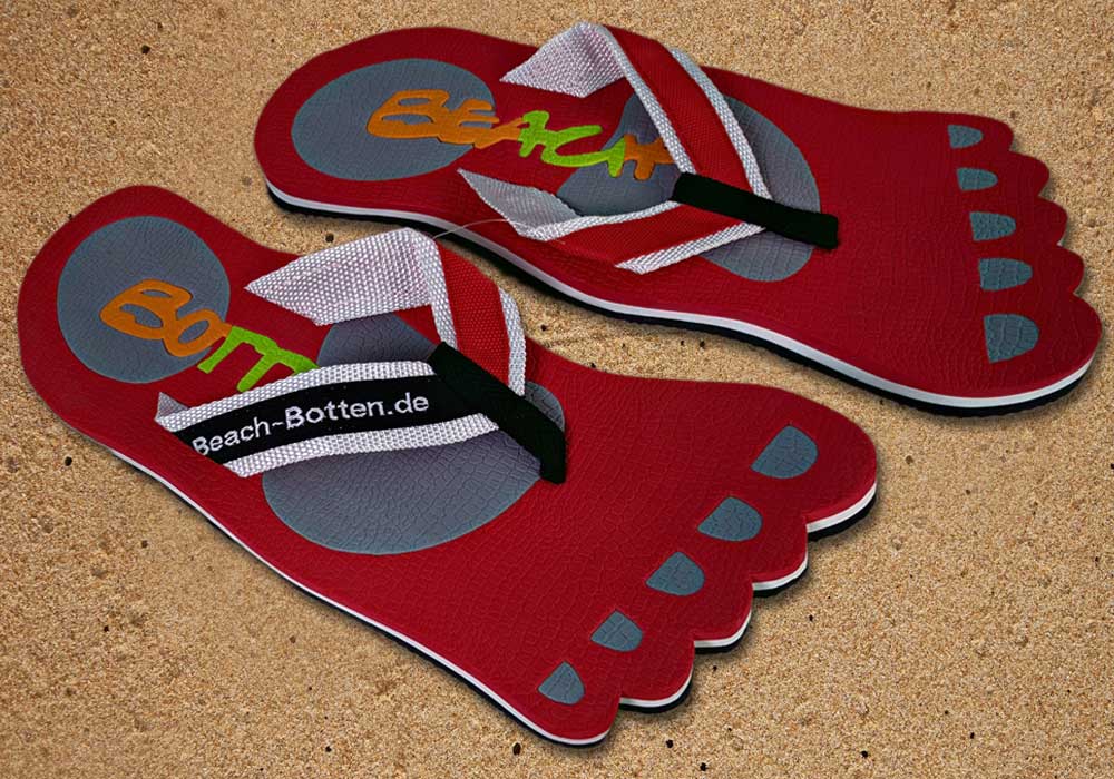 In vielen schönen Farbvarianten im Online-Shop ist auch das BeachBotten-Modell „Foot Party Big“ zu bekommen. Für die Optik wurden bei dieser Variation im vorderen Teil leichte Bögen geschnitten. Durch eine farblich passende Form werden auf jedem Badelatschen Zehennägel angedeutet. Des Weiteren befindet sich ein Schriftzug auf jedem Badeschuh. Die perfekte Geschenkidee an Dich selbst oder als kleine Freude für Deine Lieben ist die Variante „Foot Party Big“ auf jeden Fall. Hier kannst Du die rote Variante erwerben, sofern noch vorrätig. Schreite mit Freunden in eine farbige Zukunft und gönne Dir das besondere, viele weitere Modelle lassen sich im Shop entdecken.