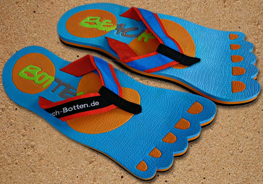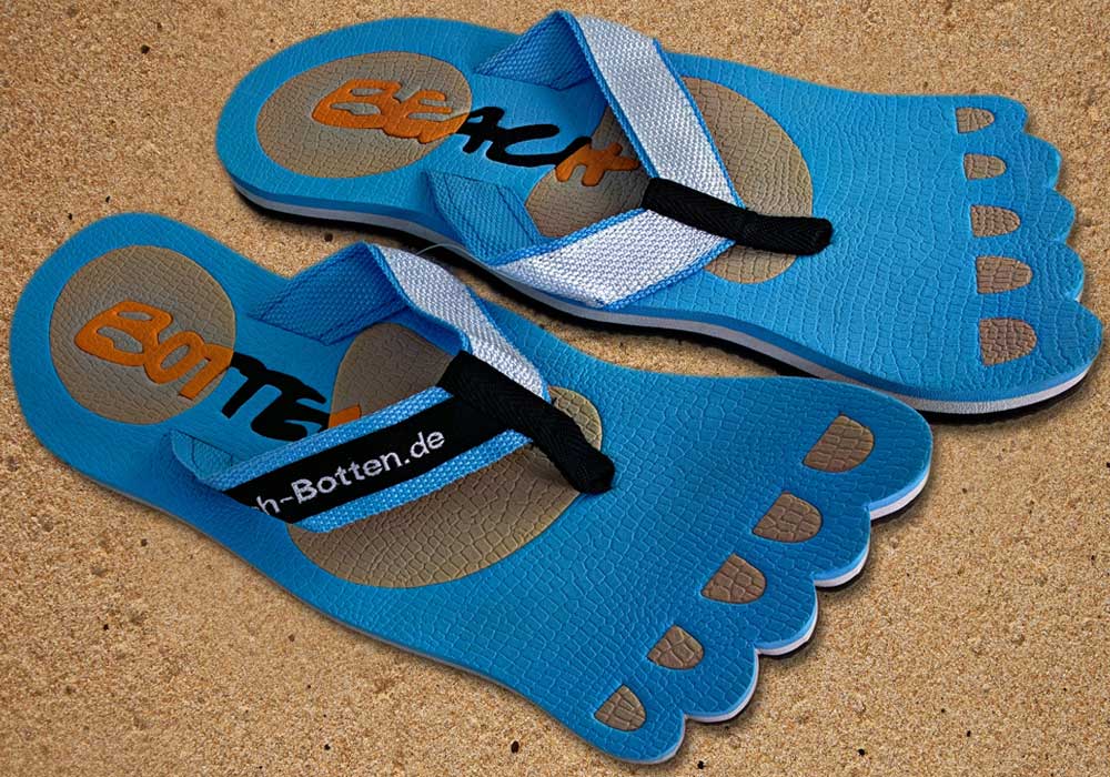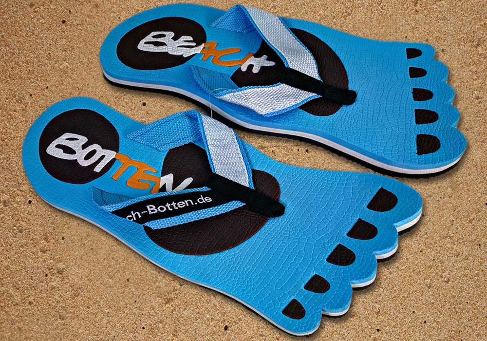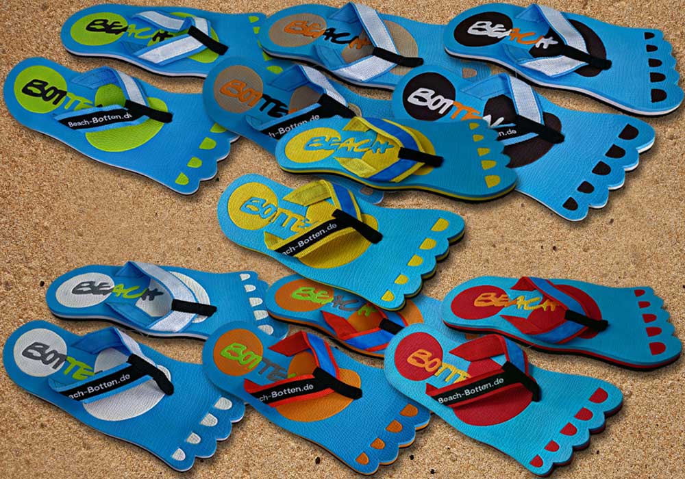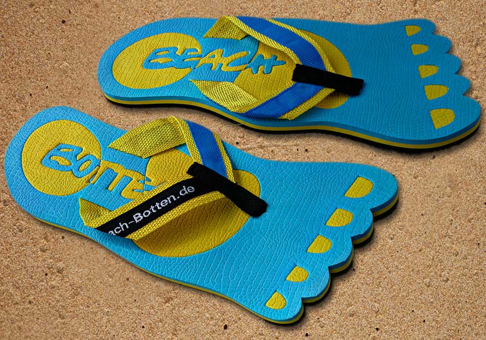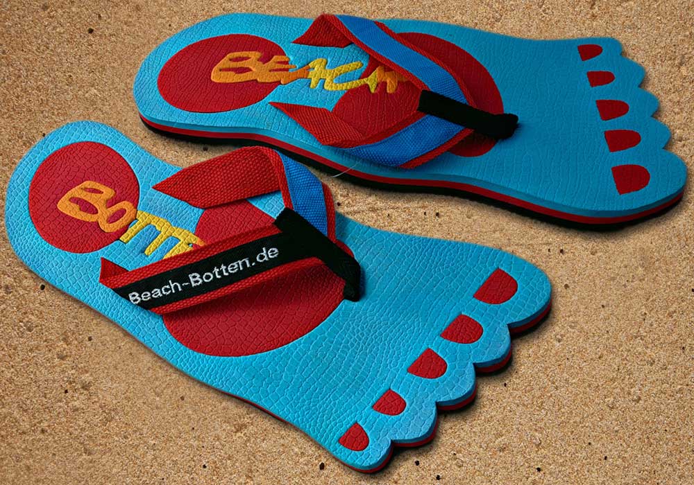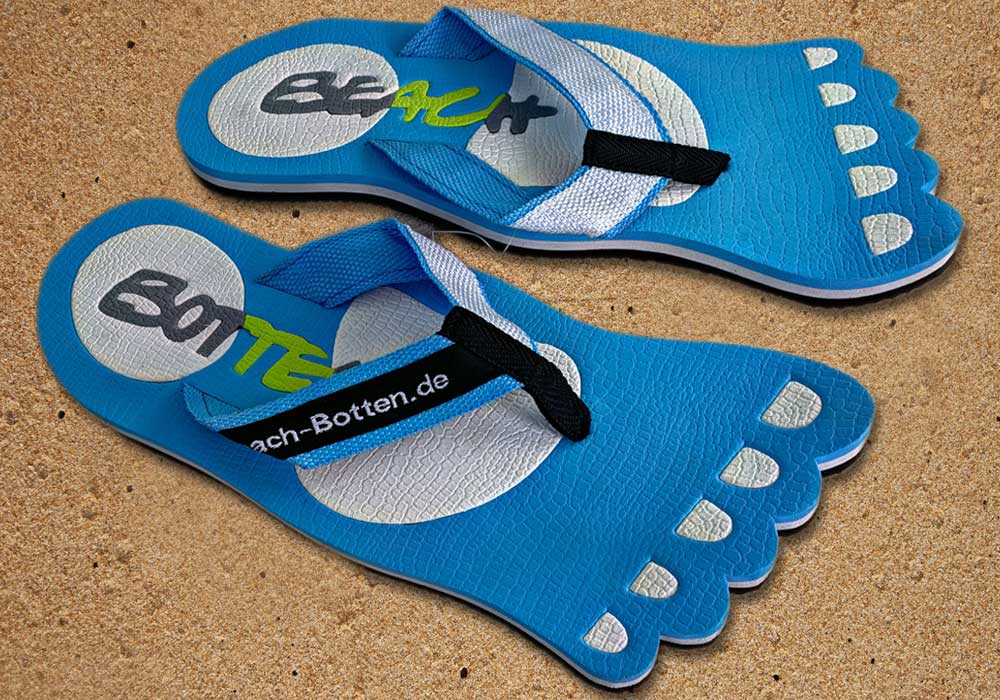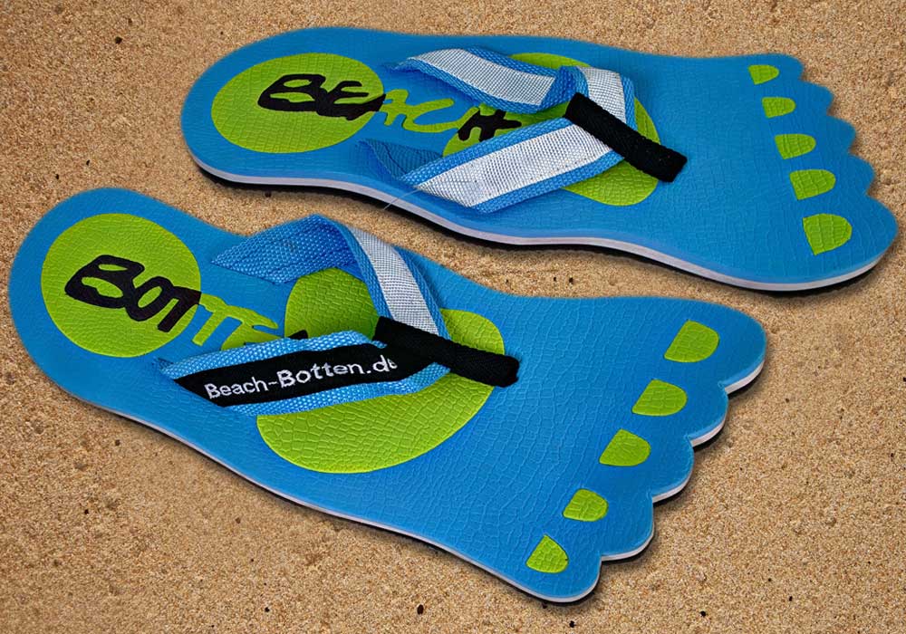In vielen schicken Farbvarianten im Online-Shop ist auch das BeachBotten-Modell „Foot Party Big“ zu bekommen. Für die Optik wurden bei dieser Variation im vorderen Teil leichte Bögen geschnitten. Durch eine farblich passende Form werden auf jedem Badelatschen Zehennägel angedeutet. Des Weiteren befindet sich ein Schriftzug auf jedem Badeschuh. Die perfekte Geschenkidee an Dich selbst oder als kleine Freude für Deine Lieben ist die Variante „Foot Party Big“ auf jeden Fall. Hier kannst Du die hellblaue Variante kaufen, sofern noch vorrätig. Schreite mit Freunden in eine farbige Zukunft und gönne Dir das besondere, viele weitere Modelle findest Du im Shop.