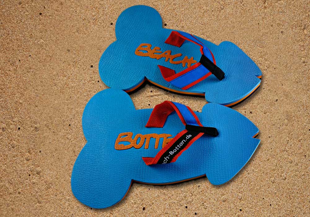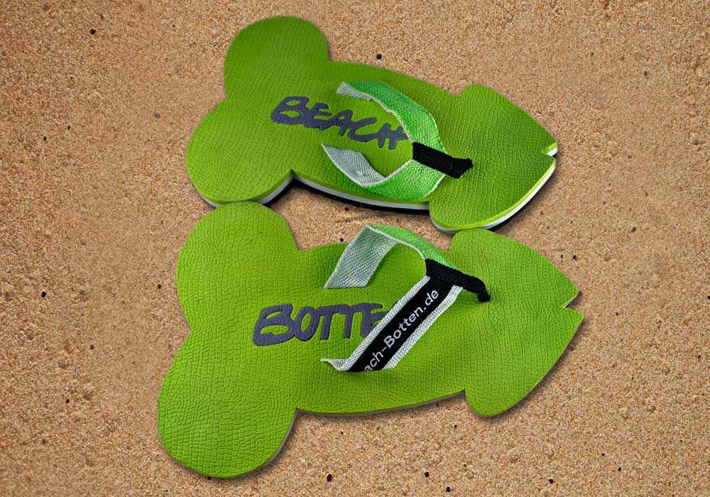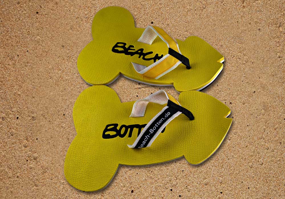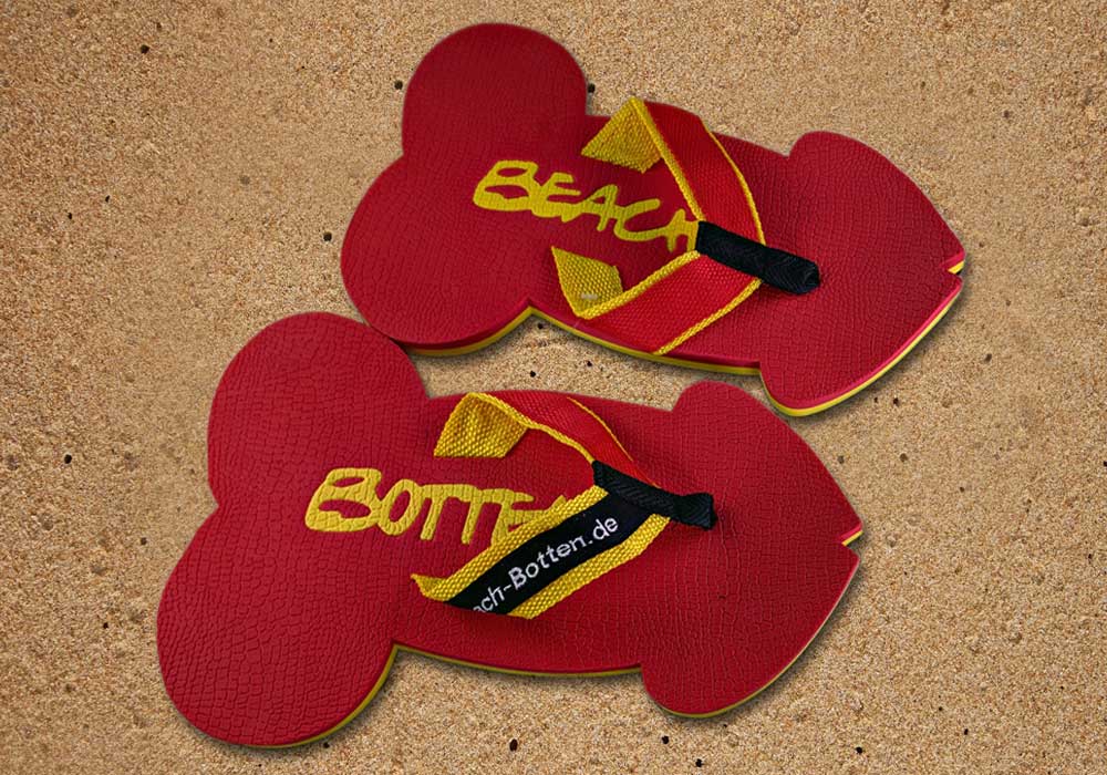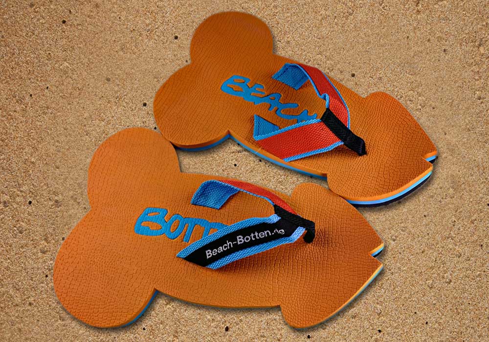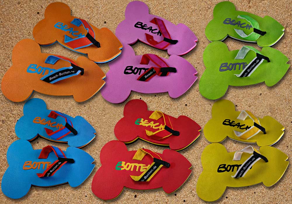 Absolut Party tauglich und sehr hitverdächtig auf jedem Junggesellenabschied ist das BeachBotten-Modell „Love Patrol“. Das Glied-Design ist klar erkennbar, erotische Gedanken sind erwünscht und schmunzeln wohl garantiert. Das männliche Genital hat eine Hauptfarbe und bekam zusätzlich noch einen farbigen BeachBotten-Schriftzug. Ein besonderes Augenmerk dieser Zehentanga ist das kleine gestanzte Dreieck vorne aus Liebe zum Detail. Die Variante „Love Patrol“ ist so fern verfügbar, in zwei Größenformen im Online-Shop erhältlich. Ein verrücktes Geschenk für Alle mit ganz viel Liebe.