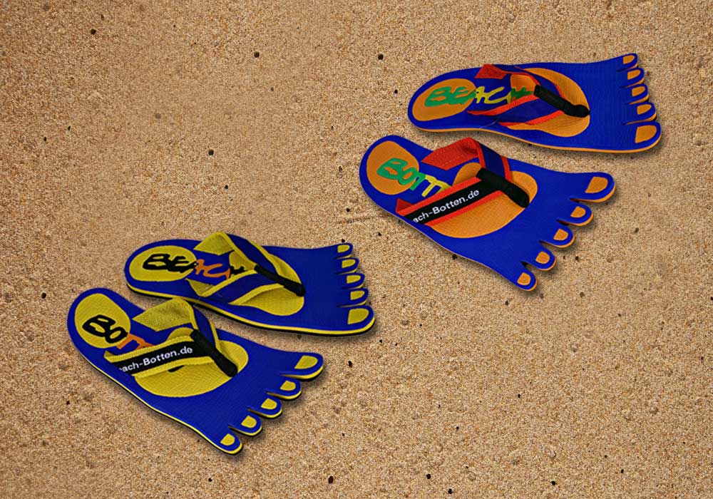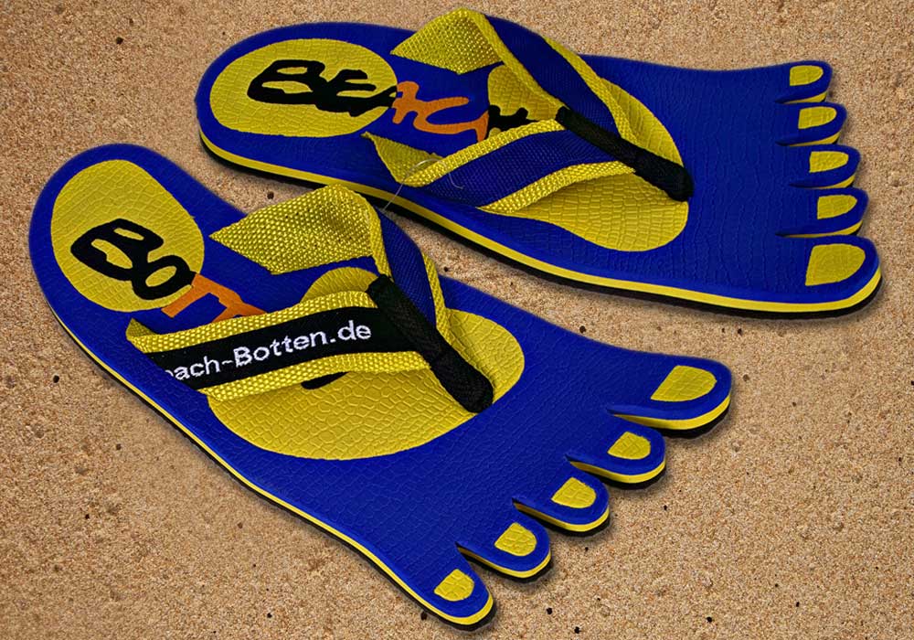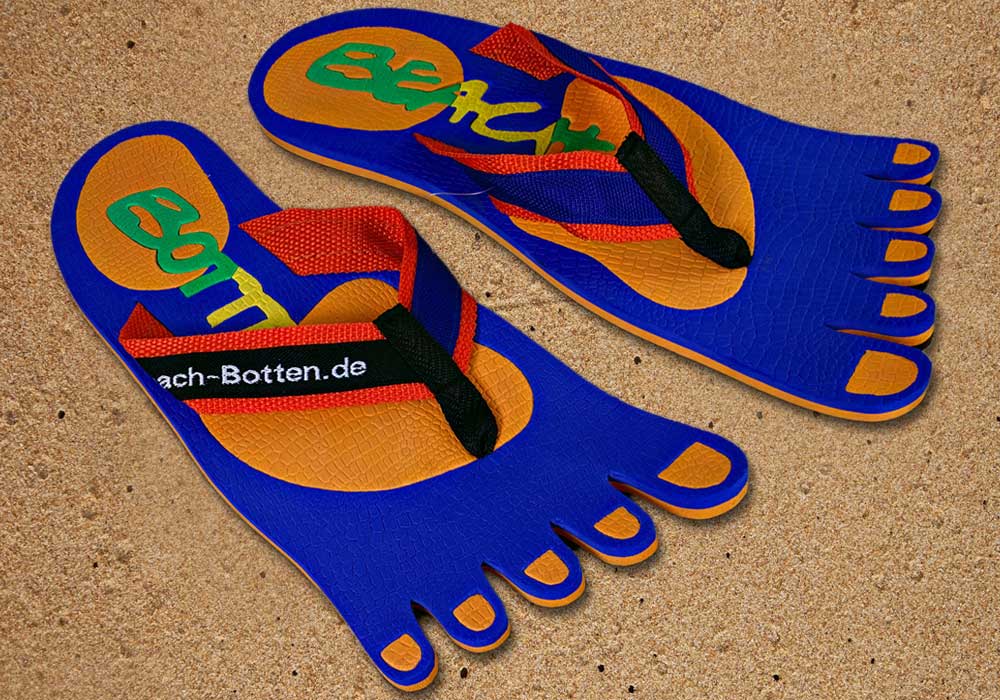 Das Modell „Foot Party Small“ ist angelehnt an die Form von deinen Füßen. Bei diesen BeachBotten wurde die Zehenform eingestanzt. Eine blaue Farbe bildet das optische Grunddesign, dass mit einem farbigen BeachBotten-Print verfeinert wurde. Aufgrund der großen Farbvielfalt im Online-Shop siehst du damit überall gut aus. Die Badelatschen „Foot Party Small“ sind alltagstauglich, etwas kleiner als andere Varianten und wunderbar mit allerlei Kleidung zu kombinieren. Hier kannst du das blaue Modell kaufen, sofern noch vorrätig. Schreite mit Freunden in eine farbige Zukunft und gönne Dir das ungewöhnliche, viele weitere Modelle kannst Du im Shop entdecken.