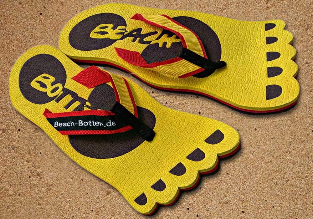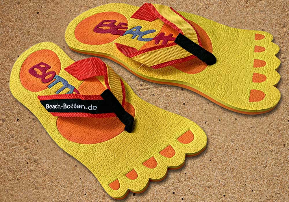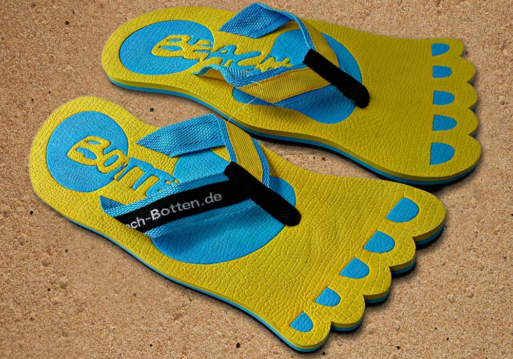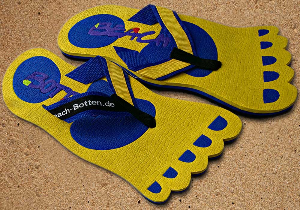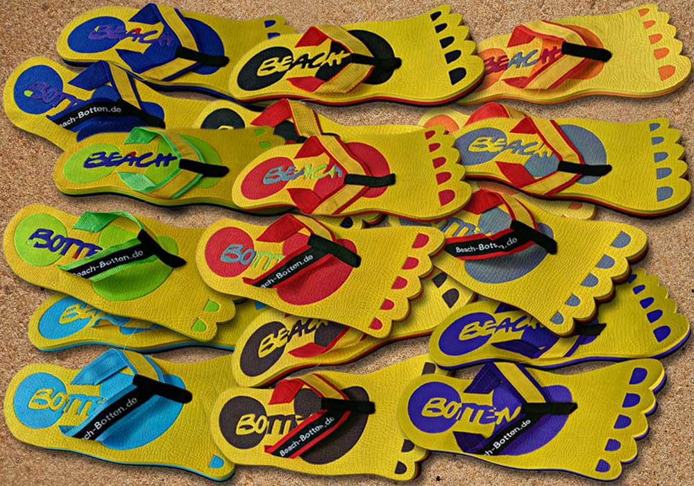 In vielen schönen Farbvarianten im Online-Shop ist auch das BeachBotten-Modell „Foot Party Big“ zu bekommen. Für die Optik wurden bei dieser Variation im vorderen Teil leichte Bögen geschnitten. Durch eine farblich passende Form werden auf jedem Badelatschen Zehennägel angedeutet. Des Weiteren befindet sich ein Schriftzug auf jedem Badeschuh. Die perfekte Geschenkidee an Dich selbst oder als kleine Freude für Deine Lieben ist die Variante „Foot Party Big“ auf jeden Fall. Hier kannst Du die gelbe Variante kaufen, sofern noch vorrätig. Schreite mit Freunden in eine farbige Zukunft und gönne Dir das besondere, viele weitere Modelle lassen sich im Shop finden.