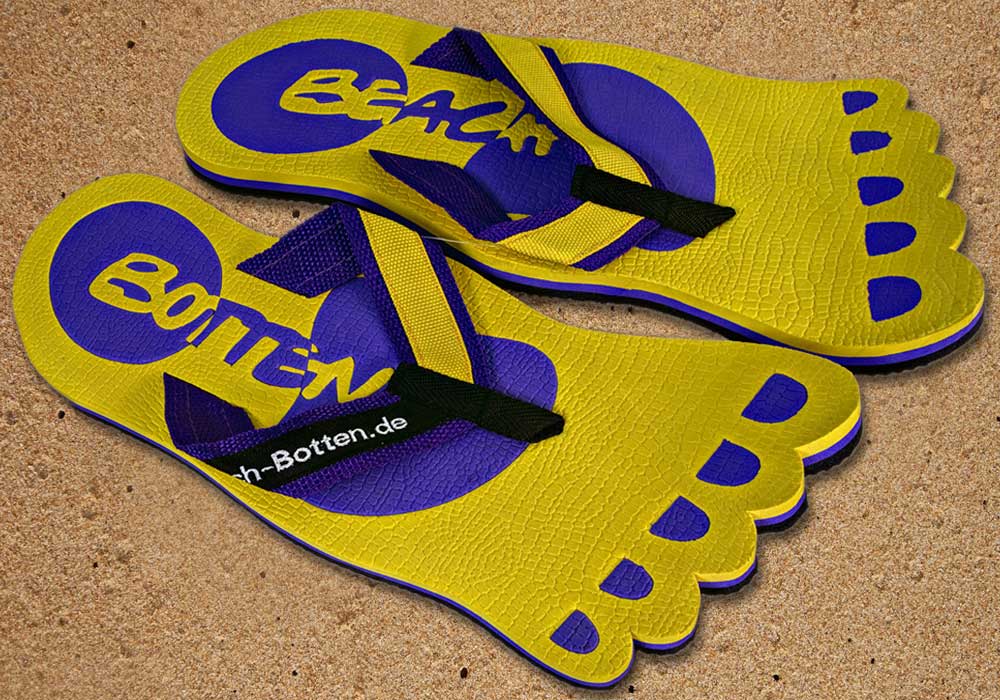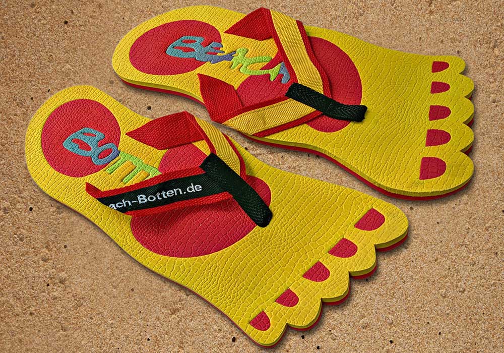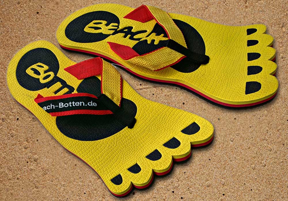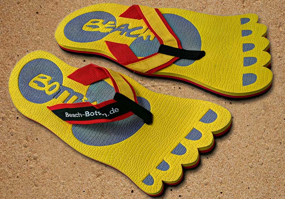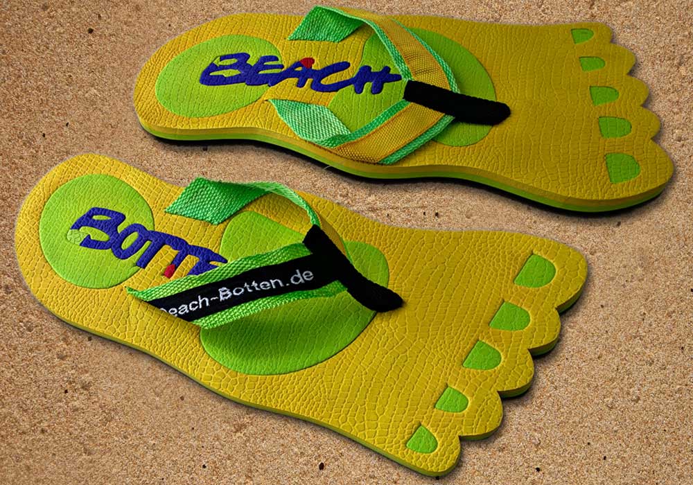 In vielen schönen Farbvarianten im Online-Shop ist auch das BeachBotten-Modell „Foot Party Big“ zu bekommen. Für die Optik wurden bei dieser Variation im vorderen Teil leichte Bögen geschnitten. Durch eine farblich passende Form werden auf jedem Badelatschen Zehennägel angedeutet. Des Weiteren befindet sich ein Schriftzug auf jedem Badeschuh. Die perfekte Geschenkidee an Dich selbst oder als kleine Freude für Deine Lieben ist die Variante „Foot Party Big“ auf jeden Fall. Hier kannst Du die gelbe Variante kaufen, sofern noch vorrätig. Schreite mit Freunden in eine farbige Zukunft und gönne Dir das besondere, viele weitere Modelle lassen sich im Shop finden.
